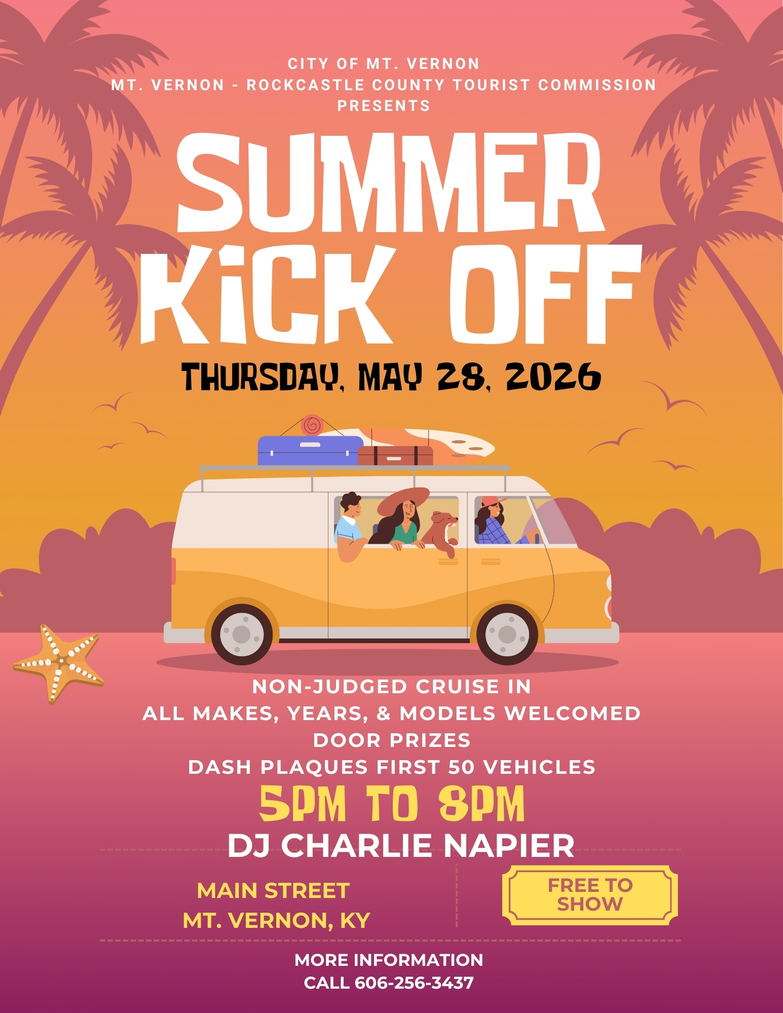 Celebrate the start of summer with the annual Mount Vernon Summer Kick Off Car Show and Cornhole Tournament. This is a free cruise in with no competition and no registration required. First 50 vehicles will receive a dash plaque. All makes and models are welcome. There will